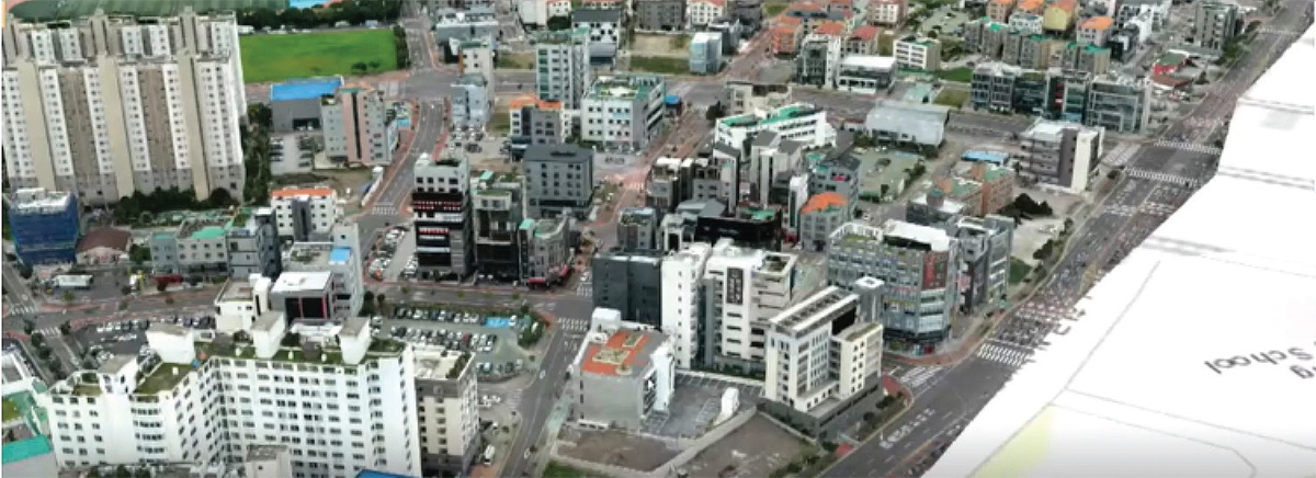 부동산 시장을 시각적으로 볼 수 있다는 점이 공간 분석의 가장 큰 매력이다. 공간 빅데이터에서 관찰되는 경향을 사람들에게 전달하고자 할 때 사진으로, 또 종이로 보여주면 설득력이 높지 않다. <그림 10>은 노형동을 드론으로 촬영한 후 3D모델을 추출하여 디지털 트윈화한 것이다. 이처럼 드론이나 3D를 통한 객관적인 자료를 제시하면 연구자가 전달하고자 하는 내용의 설득력을 높일 수 있다. 이는 감정평가사도 마찬가지다. 감정평가사의 감정평가 결과는 이러한 방법을 통해서 고객으로부터 더욱더 신뢰를 얻을 수 있을 것이다.