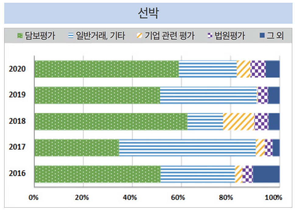 선박의 경우 선체·기관·의장별로 구분하여 감정평가를 하는 등 특별한 시간과 노력, 전문적 판단이 많이 요구되는데, 특수화, 첨단화되어가고 있는 선박의 가격 현실화, 최신 사항 등을 반영하기 위해 「선박감정평가」(2010) 도서 등의 업데이트가 필요하다. 또한, 감정평가 수행에 도움을 줄 수 있는 관련 도서 및 자료집(원가 자료, 내용연수 등)의 지속적인 업데이트, 대상물건의 유형별 감정평가 가이드 제공, 신뢰성 있는 가격자료, 관련 시장 정보, 자료의 구축 및 공유 등이 필요하다.