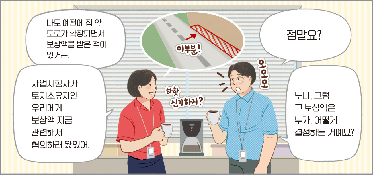 「헌법」, 「공익사업을 위한 토지 등의 취득 및 보상에 관한 법률」에 따라 공익사업에 필요한 토지 등의 취득 또는 사용으로 인해 토지소유자 또는 관계인이 입은 손실은 사업시행자가 이를 보상하여야 합니다.