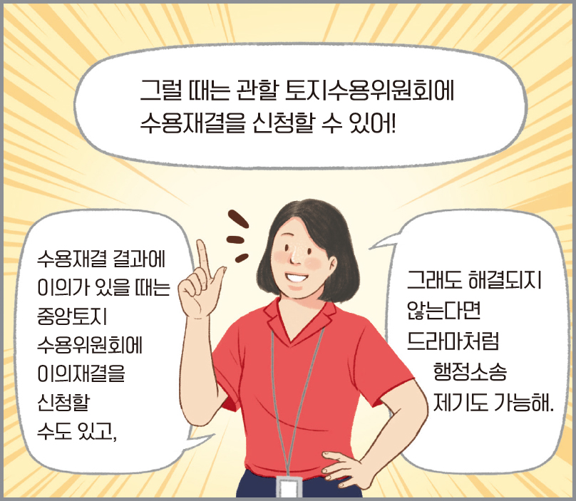 또한, 보상액에 대한 협의가 성립되지 않을 때는 수용재결, 이의재결, 행정소송 등을 제기할 수 있습니다.