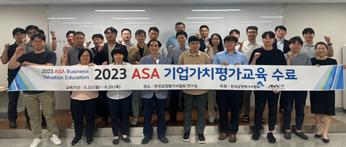 한국감정평가사협회는 선진화된 기업가치평가교육으로 관련 분야의 전문화된 인력풀(Pool)을 구축하고자 미국감정평가사협회(American Society of Appraisers)와 공동으로 진행한 「2023 ASA 기업가치평가교육」을 성황리에 마쳤습니다.