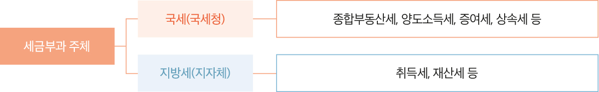 | 세목 | 취득세 | 재산세·종부세 | 양도소득세 | 증여세·상속세 |