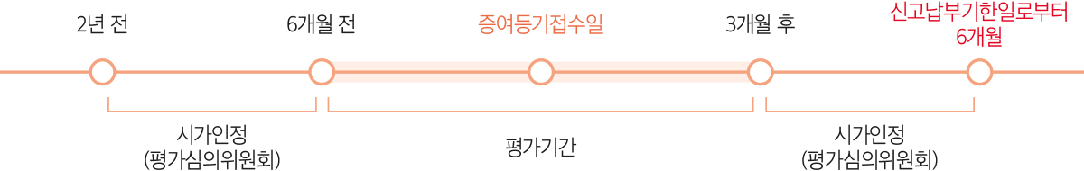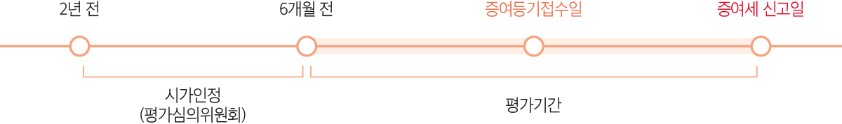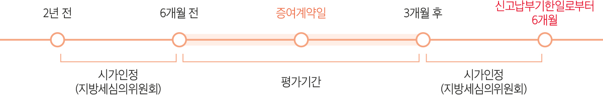 | 평가 기준일 | 부당행위 : 취득일 증여취득 : 증여계약일 |