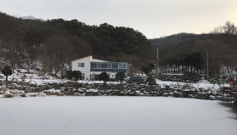 눈이 포근히 내렸던 2022년 늦겨울 어느 날, 경기도 이천시 마장면에 위치한 유원지의 현장조사 당시 찍었던 사진입니다. 적막한 산속에 지저귀는 새소리와 눈 위에서 뛰놀던 강아지 한 마리가 생각나네요. 무더운 여름이 되니 더위를 탈피하러 다시 가고 싶은 마음입니다.